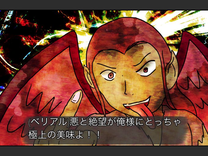 ベリアル:ソロモン72柱の1人で、悪と絶望を愛する堕天使。自分が絶望するのも大好きというサディとマゾの両方を兼ね備えている