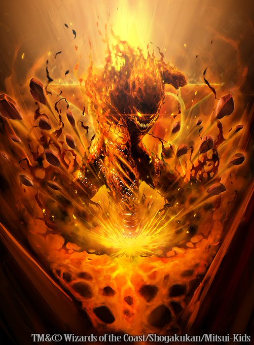 遅くなりましたが発売中のデュエル・マスターズ『ドギラゴールデン VS. ドルマゲドンX』にて「魔天斬ドゥームズ」と「終断Δドルハカバ」を描かせて頂きました。よろしくお願いします。 https://t.co/kXxIyyjDT4 #デュエマ