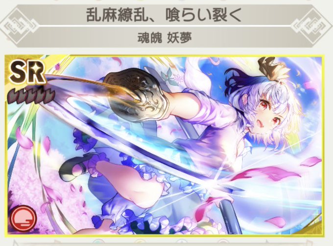 #ダンマクカグラ で新しいSR妖夢が来たので意気揚々と貯め続けてた夢見くじでガチャした🥳🌈 SR妖夢 5枚 SSRぬえ 幽香 橙 フランドール happy😆✨✨