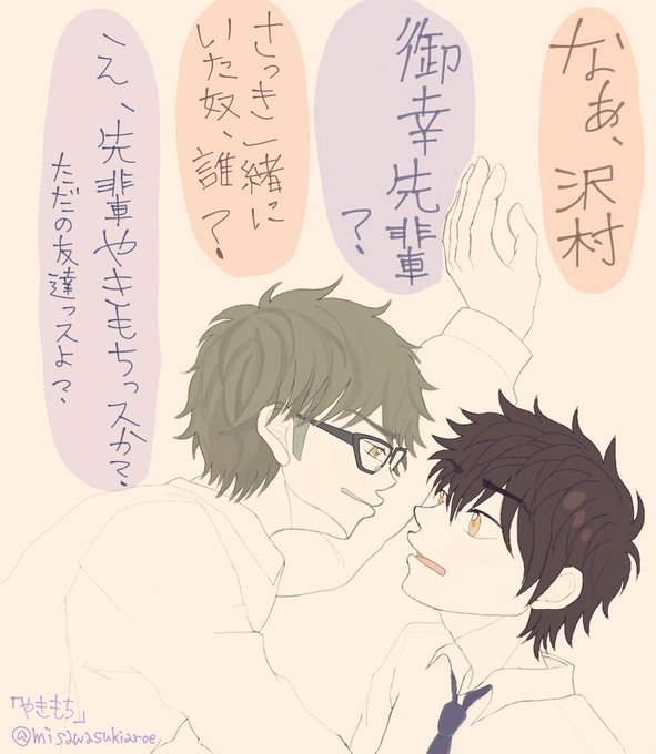 #御沢ワンドロワンライ お題「やきもち」 昔のお題で大遅刻ですが、蠍座といえば嫉妬深いのでやきもち焼く先輩描きました! よろしくお願いいたします〜!