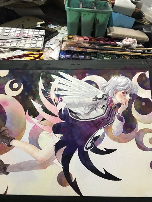 ヘカテー描いたよー アナログ、透明水彩 #秋のアナログ紺珠伝祭り