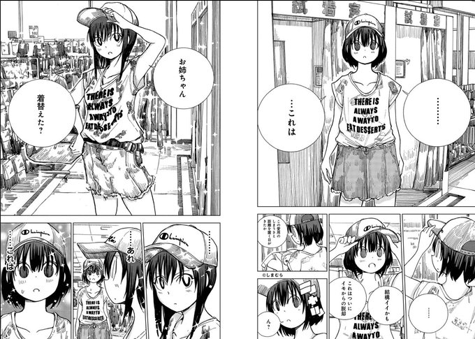 個人的に渡邉ポポ先生『埼玉の~』1巻で、「おおおおおおっ!」と感動したのは、「姉妹で同じ服を着てもなぜか姉はイモくなって妹はキマる」(でも姉もイモかわいい)というちょっと描き難そうな絵が、バッチリ決まっているところ(pp.52-53)。