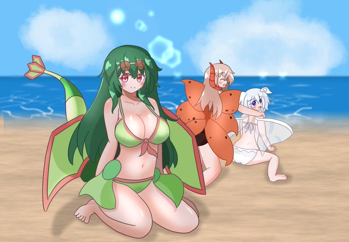 やっと水着絵描けた!背景は知らない! #ポケ擬