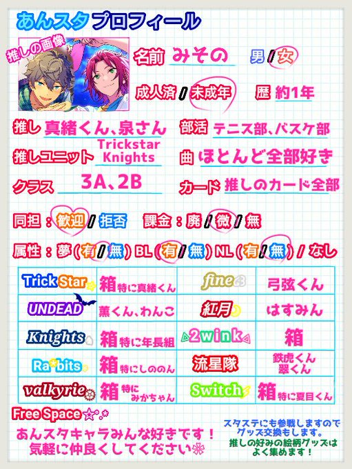 泉さん・真緒くん最推しのトリスタPです 気になった方お迎えいきます💨 年下上関係なく仲良くしてくれる方を探しております…! #Twitter上にいるあんスタ好き全員と繋がるのが密かな夢だったりするのでとりあえずこれを見たあんスタ好きはRTもしくはフォローしてくれたら全力でフォローしに行きます