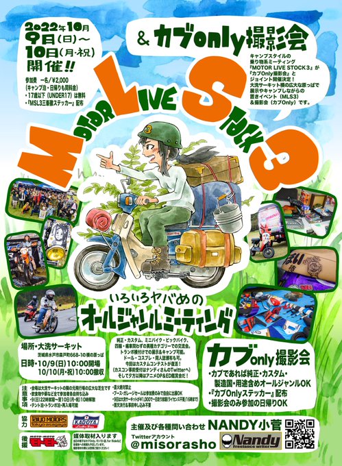 Dope motorcycle and outdoorsさんがMOTOR LIVE STOCK3(MLS3)&カブOnly撮影会に出展決定!