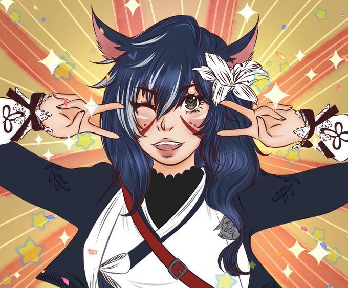 Quick color of a pretty Miqo’te I saw @ #NickArtParty : ) #ffxiv