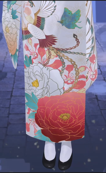 I adore the flower patterns on the white kimono. And the sunrise hair coloring fits so well! Thank you Huke-papa for the job well done!
