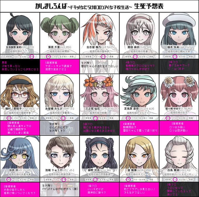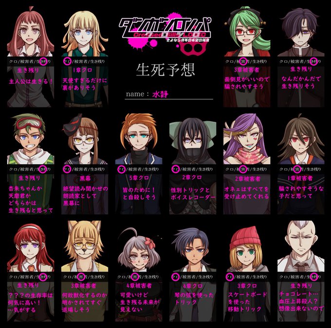 #クロシロンパ生死予想 生死予想に挑戦させていただきました。 3章と4章のクロ予想に苦戦しました…