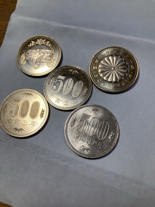 わいの500円硬貨これくちょん 1週間のみ発行のモノと3ヶ月のみ発行のモノと9ヶ月のみ発行のモノ それと天皇陛下御在位30年記念のモノ 趣深かし