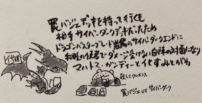 本日のデュエル ハイライト センチビットからライノ行って破壊通って勝ち筋できた気がした直後レッドアイズバーンとかいうオチ綺麗すぎて死ぬほど笑った ありがとうございました😊 (レッドアイズフォロワーさん代理ドラゴン)