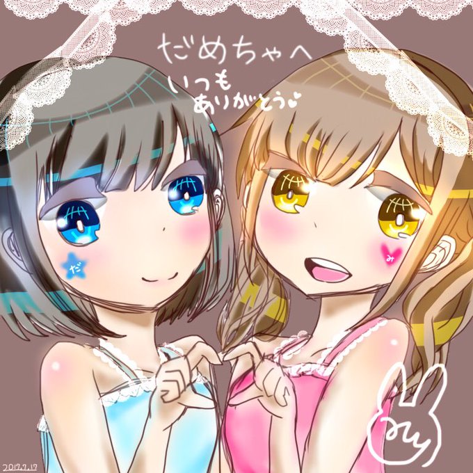 だめちゃとおそろっち(*ノωノ)テレ (*´﹃`*)こういうのずっと描いてみたかったん♪ いつもと少し描き方変えたよ(*´∀人)♡