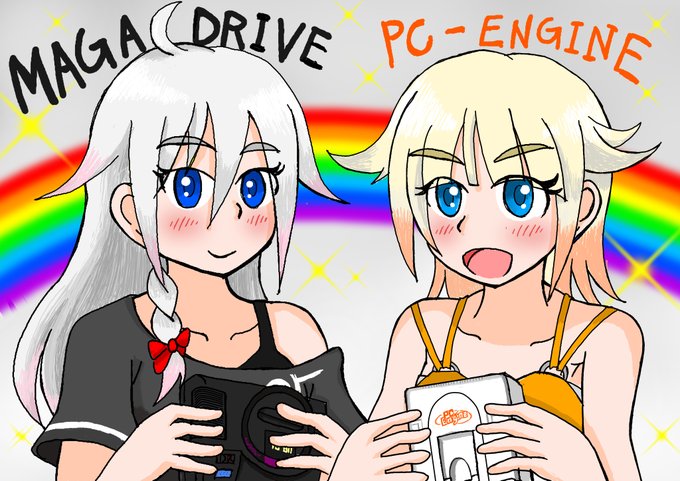 ARIA姉妹描きたかったので描いた...☺️ メガドラミニとPCエンジンミニもついでに持たせたよ #毎月1日はOИEちゃんの日 #メガドラミニ #PCエンジンミニ