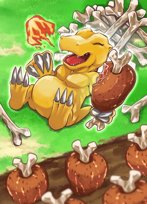 イラコンはアグモンで応募してました!肉畑で満腹ハッピーなアグモンを描けて楽しかった〜😊 #DIGIMONCON #digimon #デジモン