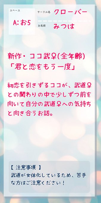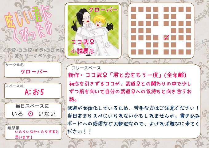 新作のココ武♀小説 を支部で展示予定です!☺️