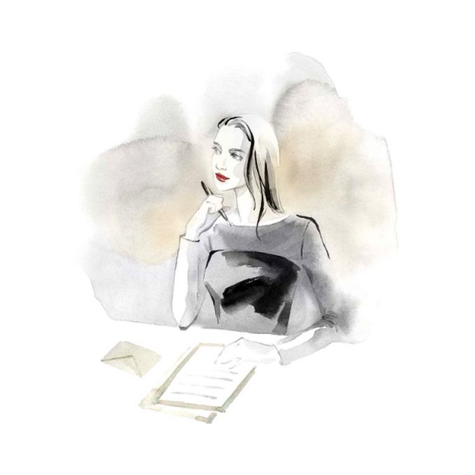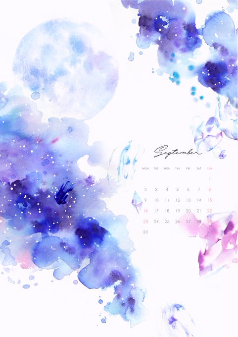 水彩のにじみを残しつつ、大人っぽく落ち着いたカラーに。