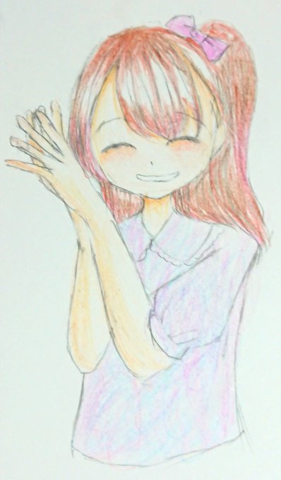 今日は絵を楽しく描きました🎵 女の子の絵です お写真ではほとんど写ってないですが、きらきらの色鉛筆つかったので 絵がきらきらしてます ほっぺたがかわいく塗れてうれしかったです #イラスト