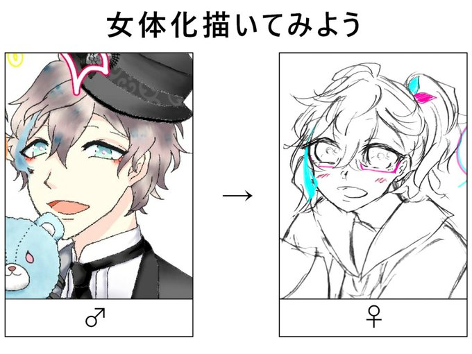 テンプレお借りしました! (※女体化注意・過去絵) #女体化描いてみよう