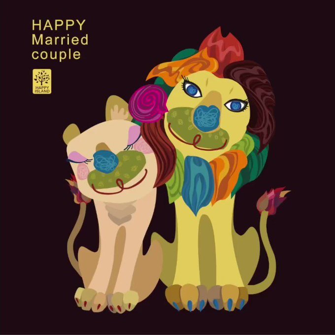 #イラスト #ハッピーを届けたい #小さいハッピーでも数集まれば大きなハッピーになる #敬老の日 #夫婦 #ライオン #ミッツ