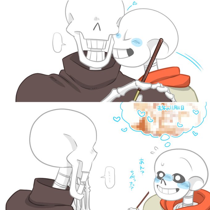 11/23と描きながら欲のままに「パピルスさんと同じ目線でチューしたいのでパピルスさんにだっこしてもらってチューするサンズさん」を描いたイラストです。 でもサンズさんはいい兄さんなのでこのイラストも実質いい兄さんのイラストです。
