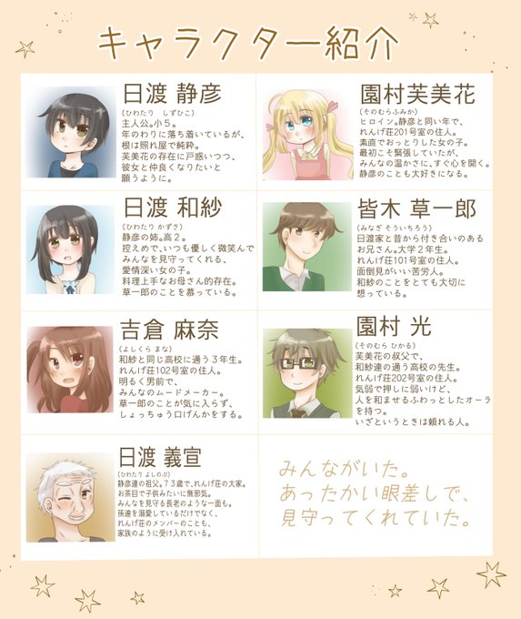 @tos 【固定用】 現在動かしている創作は、「ひととせ」と「みつば日記」です。 どちらも現代が舞台の作品です。ほのぼの、時に切ないお話。 詳しくはサイトにてどうぞ~ https://t.co/rDyQMM9Jwm