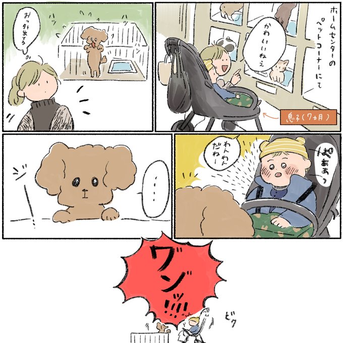 6ヶ月の頃、夫が撮ってくれていた写真を見ながら描いた😋 作業しているとよく画面を覗き込んでは「ア!ウ!」などと色々言ってくれる セリフは妄想で、、