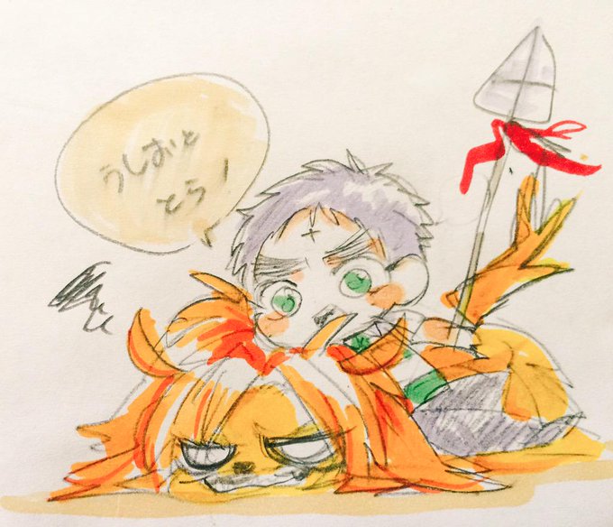 ひとでさんから年賀状〜!!庵赤DAーーー!!✨✨これはひとでさんの庵赤身長差へのこだわりが感じられる一品…🙏🙏庵野くんの思っきし赤井くんに身長合わせてくれてる体勢いいなぁーー!!(´つヮ⊂)→