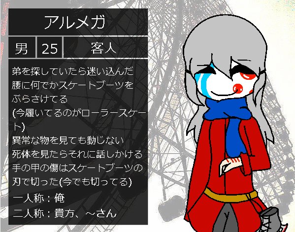 まとめておきました。少し記憶がない案内人と甘い匂いを出す清掃員と吸血鬼とSAN値の耐久力が強い客人で参加してます よろしかったら仲良くしてやってください