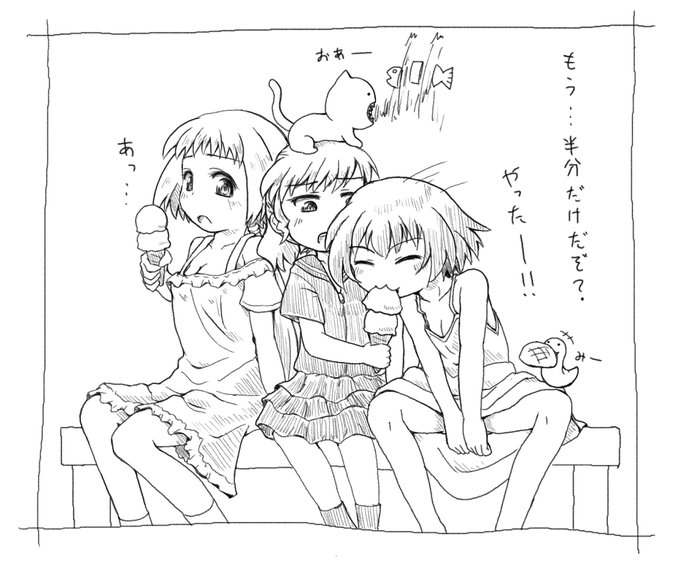 7.オリキャラ紹介 古い絵を引っ張ってきてるのが多いので、今は少しデザインが変わってたりしますが… 1枚目:稀多まき子、三並みみ子+みーみー、尾崎あこ+おあー 2枚目:とばり、しの 3枚目:用瀬結希(モチガセ ユウキ)(左下)、八頭明美(ヤズアケミ) 4枚目:ダイノシリスキサウルス、しりネコ