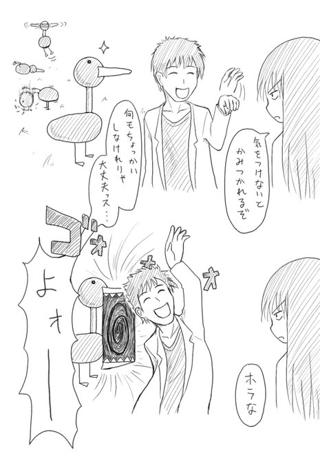 #わけのわからないラクガキ 今朝、子供が目を覚ましてやってきたので、描いてたのをさっと隠して「何か描いて欲しいのある?」と聞いて出して貰ったお題で描きました。 喜んで貰えたので、今後もやってみようと思ってますw