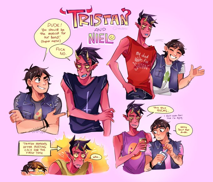 i have this au for my oc tristan where he's a demon prince infiltrating an american college and his friend niel is his human ambassador (also no one realizes he's a demon and they all just think he's cosplaying all the time)