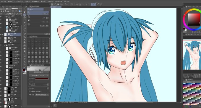 見比べて貰うとわかるのですが、下手っぴなので前髪、ツインテール、肩周りなど毎回描き直してるので、髪型が変わったりしてます。