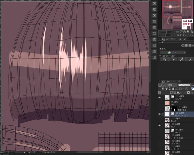 全テクスチャの全レイヤーを添付予定で、髪の毛1本から瞳孔の線まで簡単フルカスタマイズできるように組んでいます。