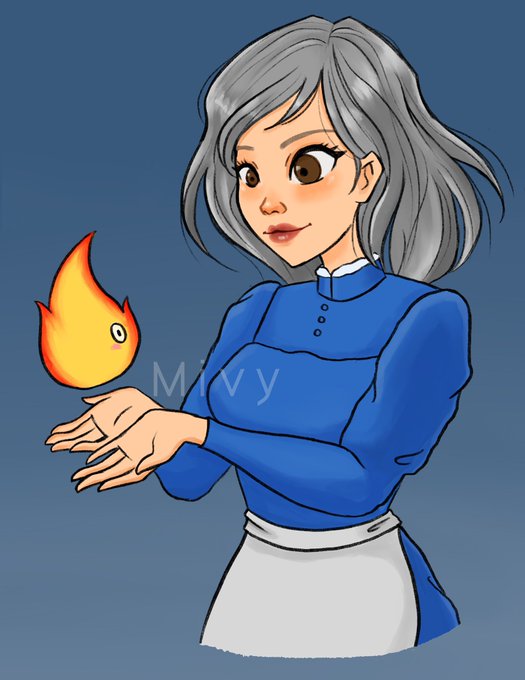 #art #ArtistOnTwitter #digitalart #fanart #Ghibli #HowlsMovingCastle #sophie #calcifer #anime