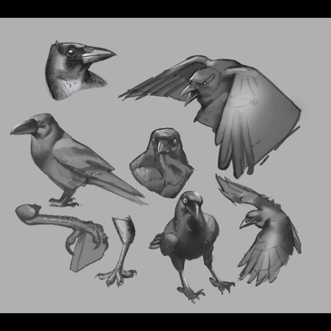 had to do some crow study's for college. little fun fact about me is that i used to draw birds before robots