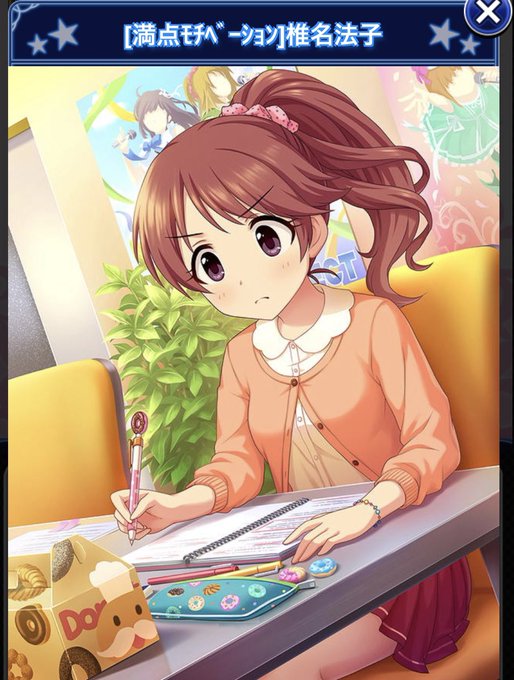 ( ゚〇゚)383プロ設定その8 法子は恒常スタラン重なったり結構縁あって来てるので「私めっちゃ可愛いからアイドルいけるよ!」って自分から何度も売り込んで加入したイメージです。 嫌みにならない押しの強さが魅力ですね。 ドーナツピングーやたらガチャで出て来たのは関係あるかも #椎名法子