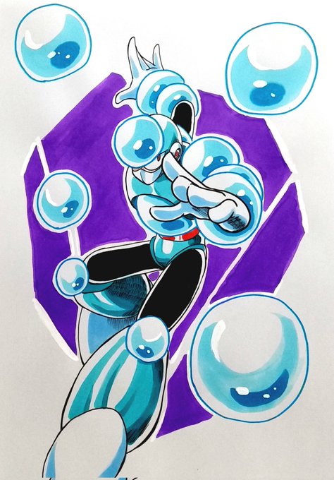 なんか最近1年位前に描いたボスキャラのイラストに反応あったりして、これは久しぶりにロックマンのボスを描けっていう啓示かなと思って久々のボス絵。
