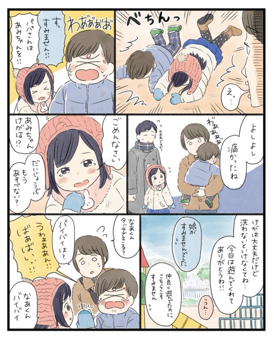 先日公園で息子がケガをしたんだけど、痛みよりもお姉ちゃんと遊んだことが何より楽しかったみたいで、同じくらいの女の子を見つけると「あーたん」って追いかけてる…涙のお別れで本当に残念…1週間経って傷も治ったし、また会えるといいな…😢 #育児漫画 #育児絵日記 #漫画が読めるハッシュタグ
