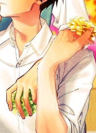 NOTICE HOW HIRANO'S HOLDING A FLOWER THAT REPRESENTS KAGIURA (GREEN) AND KAGIURA HOLDING A YELLOW FLOWER (HIRANO)