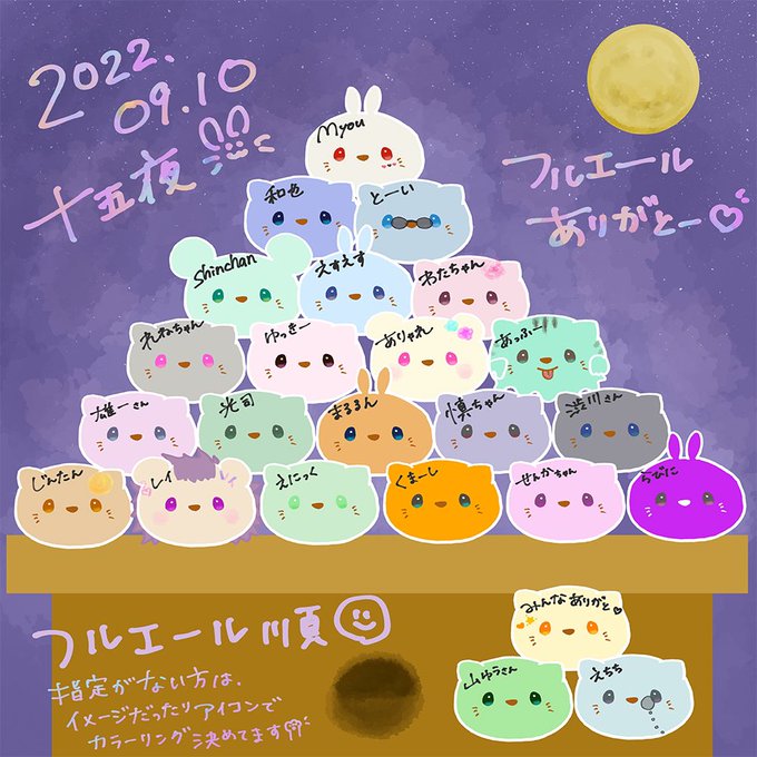 今日は十五夜らしいので、久しぶりにフルエールのお名前書く日にするよー!17時頃から1時間半くらいですが、よかったらお名前書かれに遊びに来てください🙌
