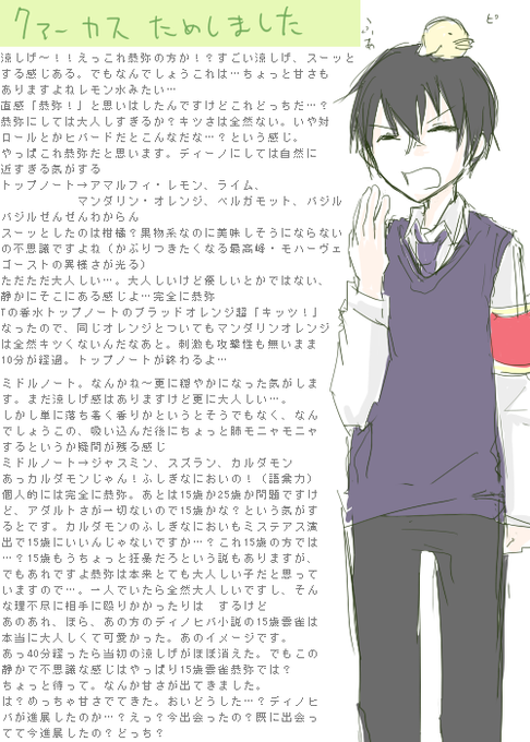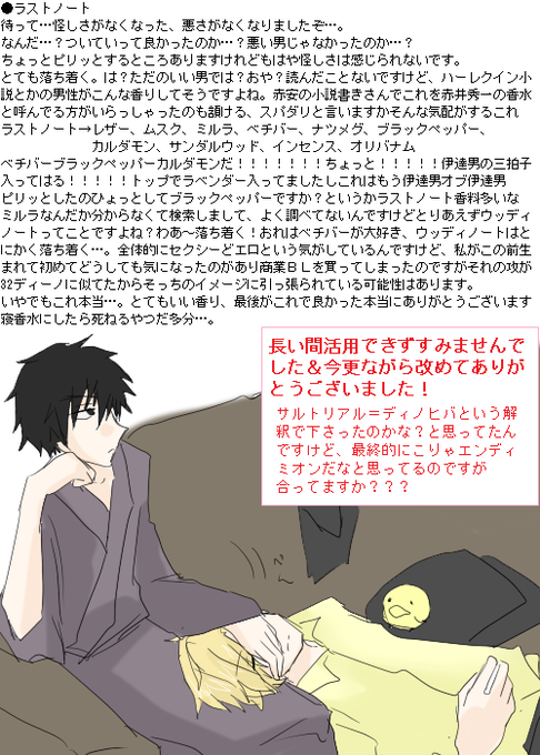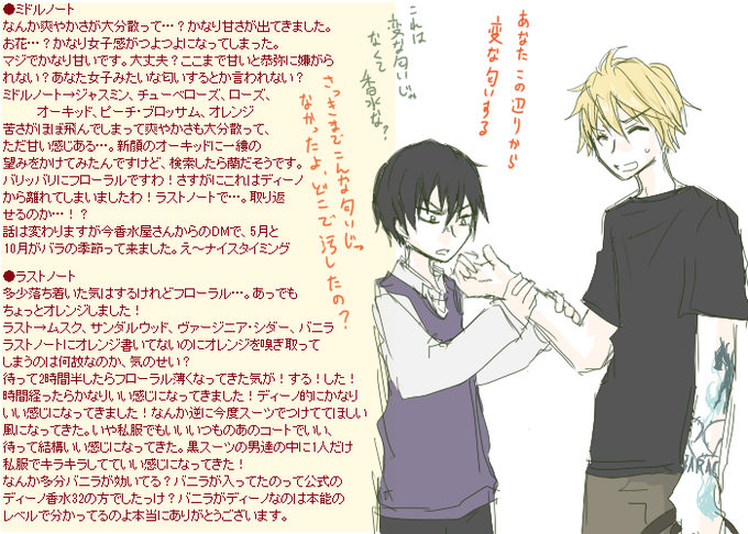 いただきもの香水の!アルテミジアを試しましてしかしここにきてディノヒバ変換できず無駄に親子落書きを晒しておちゃをにごすの図です