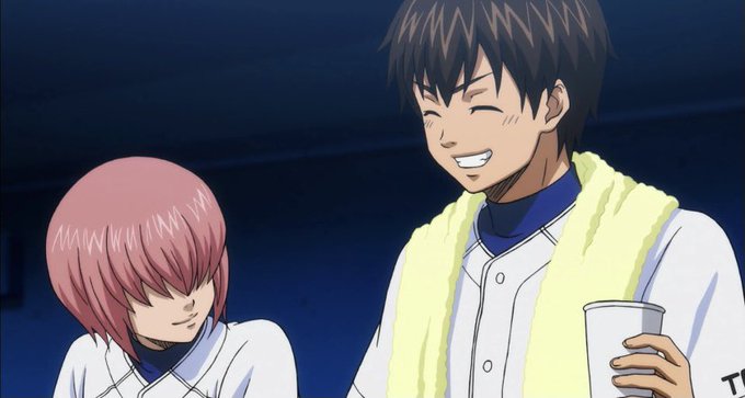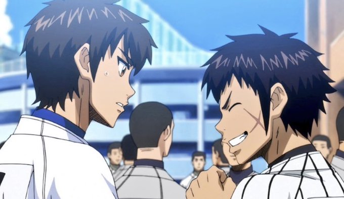 miyuki is just smiling softly and eijun is looking at him in an annoyed way