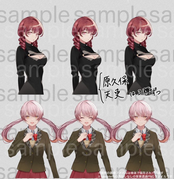 主人公9種、天吏杏樹3種、原久保結子3種を追加しています。(今まで女性陣の立ち絵を含んでいなかった理由は、単に需要があるとは思っていなかったからです。)