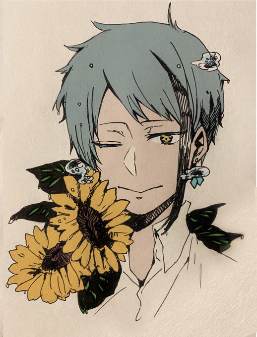 オクタヴィネル🐚とひまわり🦈🌻🐙ひまわり🌻🌻🐬🌻🌻 #ツイステファンアート