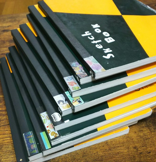 卒業記念絵と3年分のスケッチブック。 今年卒業された方、おめでとう!