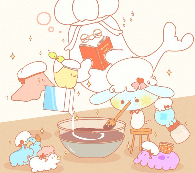 みんなといっしょに チョコレートのおやつを作ろう! ✨🍫(*・×・´*)🍫✨ (レイヤーの並びを修正しました;) #みずいろしいたけ #すぴょんず #ひよこまめ #くらげ #めんだこ #うみうし #イラスト