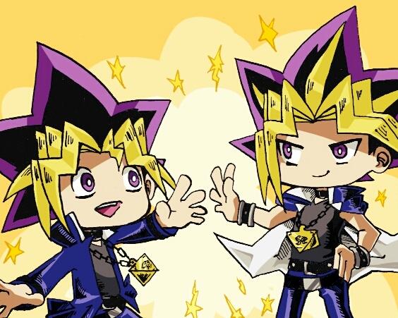 そろそろ描きおさめかね …トリミングしたら足曲げてるの見えなくて遊戯が露骨に小さいぞ