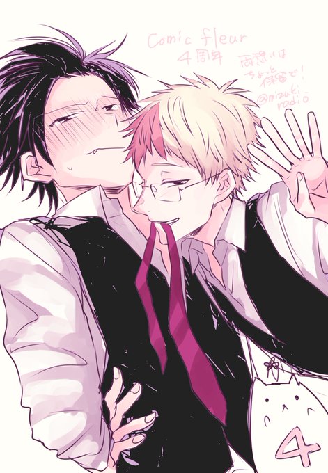 COMICフルールさん本日4周年おめでとうございます!橘の発売中の既刊3冊すべてフルールさんでだしていただいております!お祝い記念にでてくるカプみんな描きました!これからもどうぞよろしくおねがいします~!