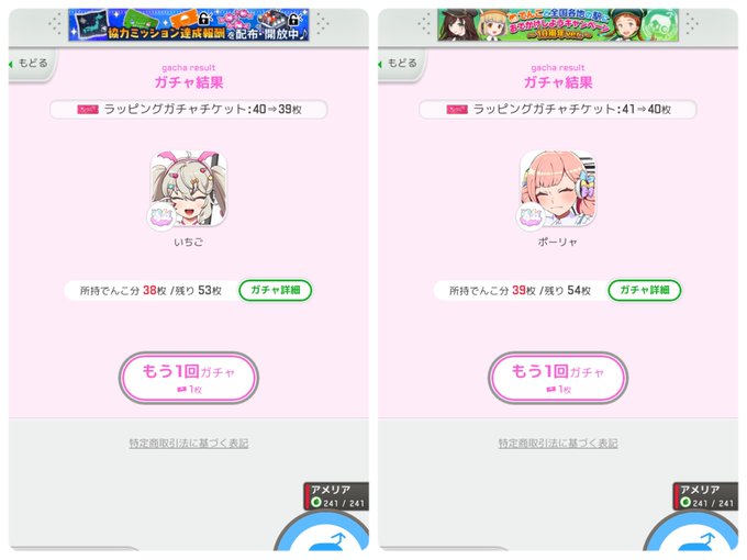 復刻レインボーどりぃ〜みぃを2回引いた。 可愛い( ・∇・)