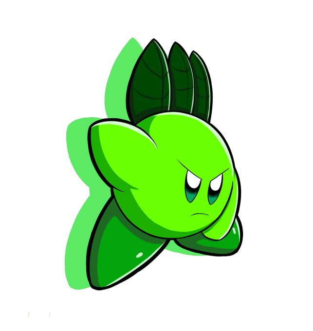 リーフィ(男形態)です!これは以前ツイッターに公開したやつでしたよね! 今回は「カービィファイターズ」風のイラストで描いてみました。そのせいか、なんか今までで一番カービィ系でうまく描けた気がする。 #バレンタインTSFスマブラ