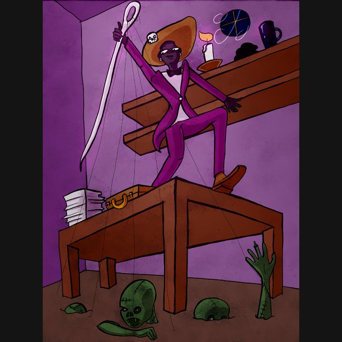 Sir Fadhili Laveau is a #necromancer w/ the power to subpoena the dead. As an unlicensed lawyer who represents the Grim Reaper, he has to do every "tiny little favor" asked of him
